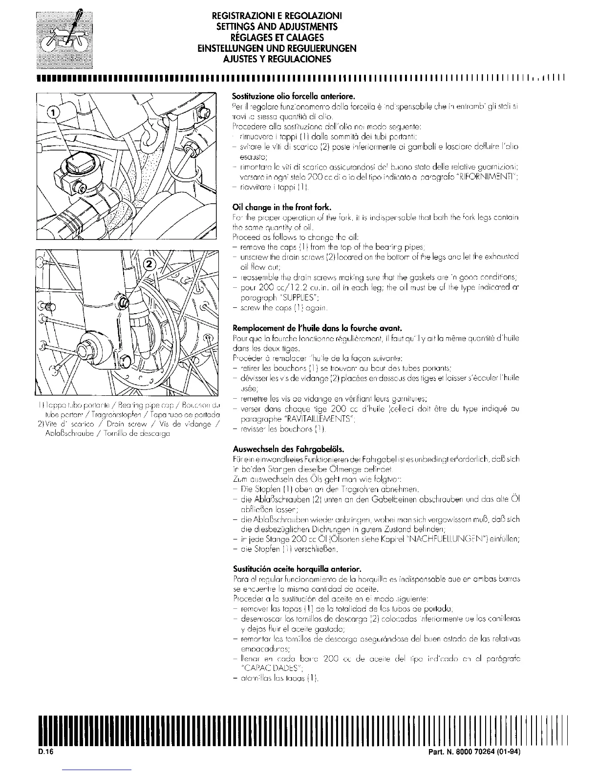 Cagiva Roadster 521 - Oil Change in the Front Fork