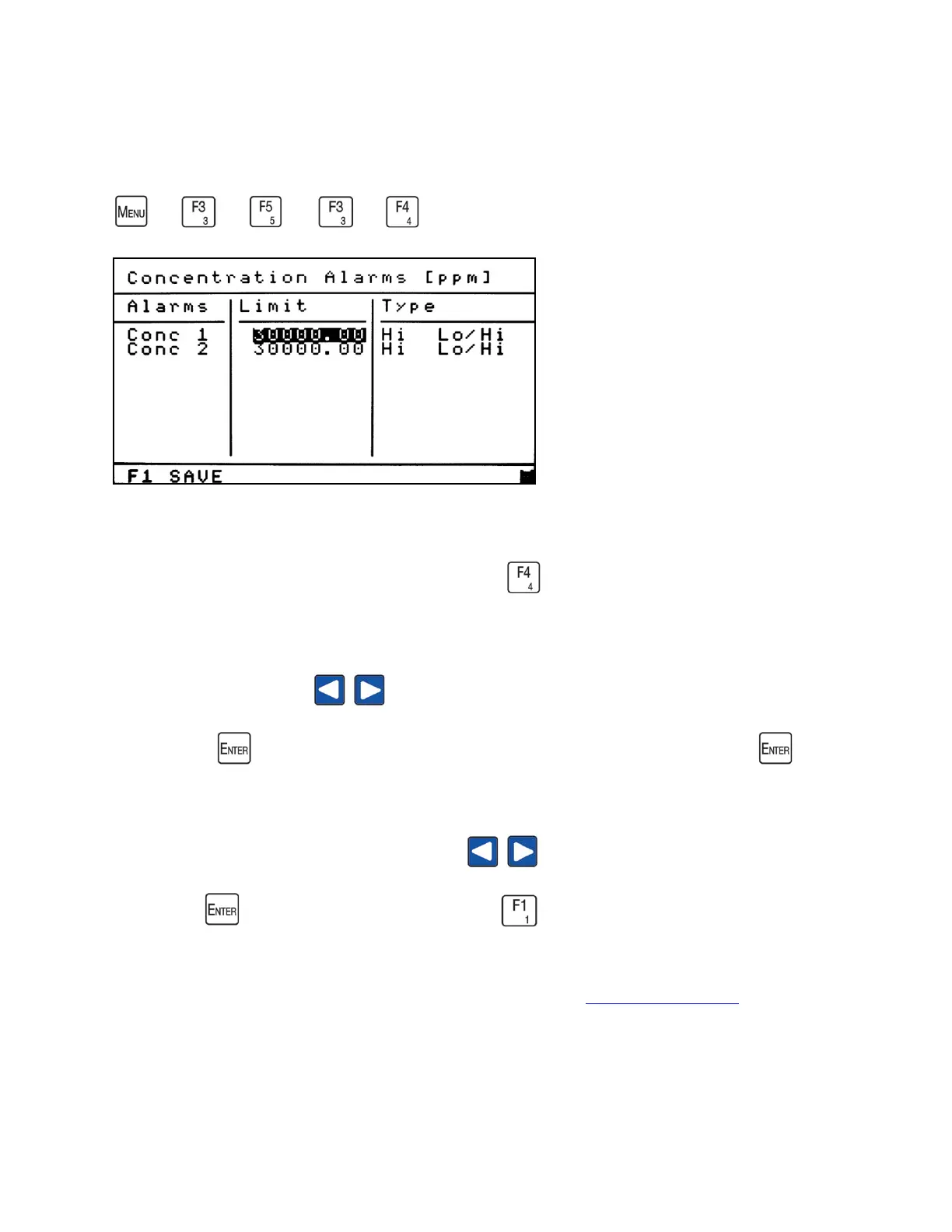 concentration. From the Alarm Limits menu, press to access the Concentration Alarm