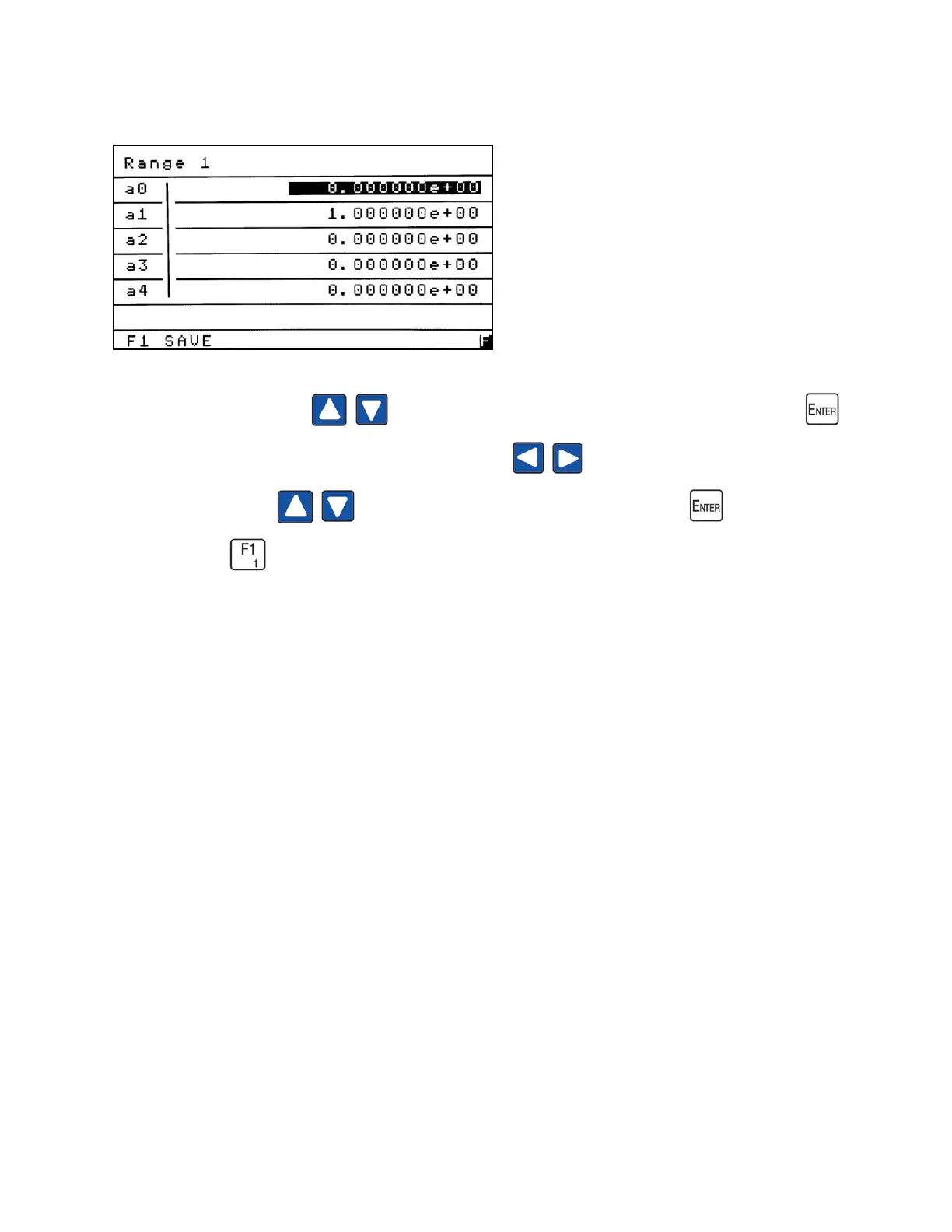 Use the Up/Down arrows to highlight the coefficient you intend to change. Press