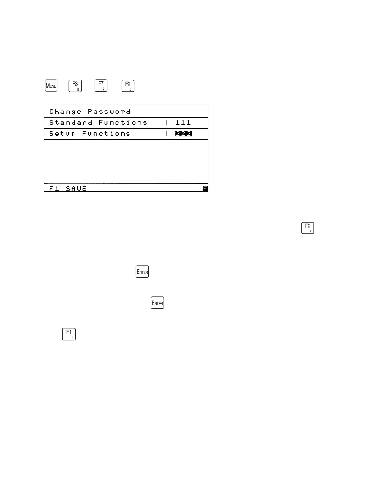from the factory-preset 222 to a new password. From the Security menu screen press to
