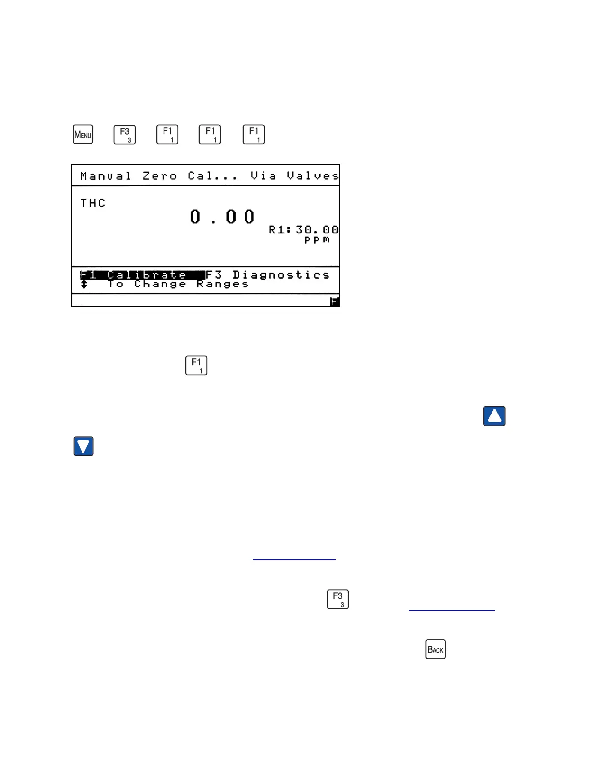 Make sure the analyzer is in the range you wish to calibrate. Use the Up/Down arrows