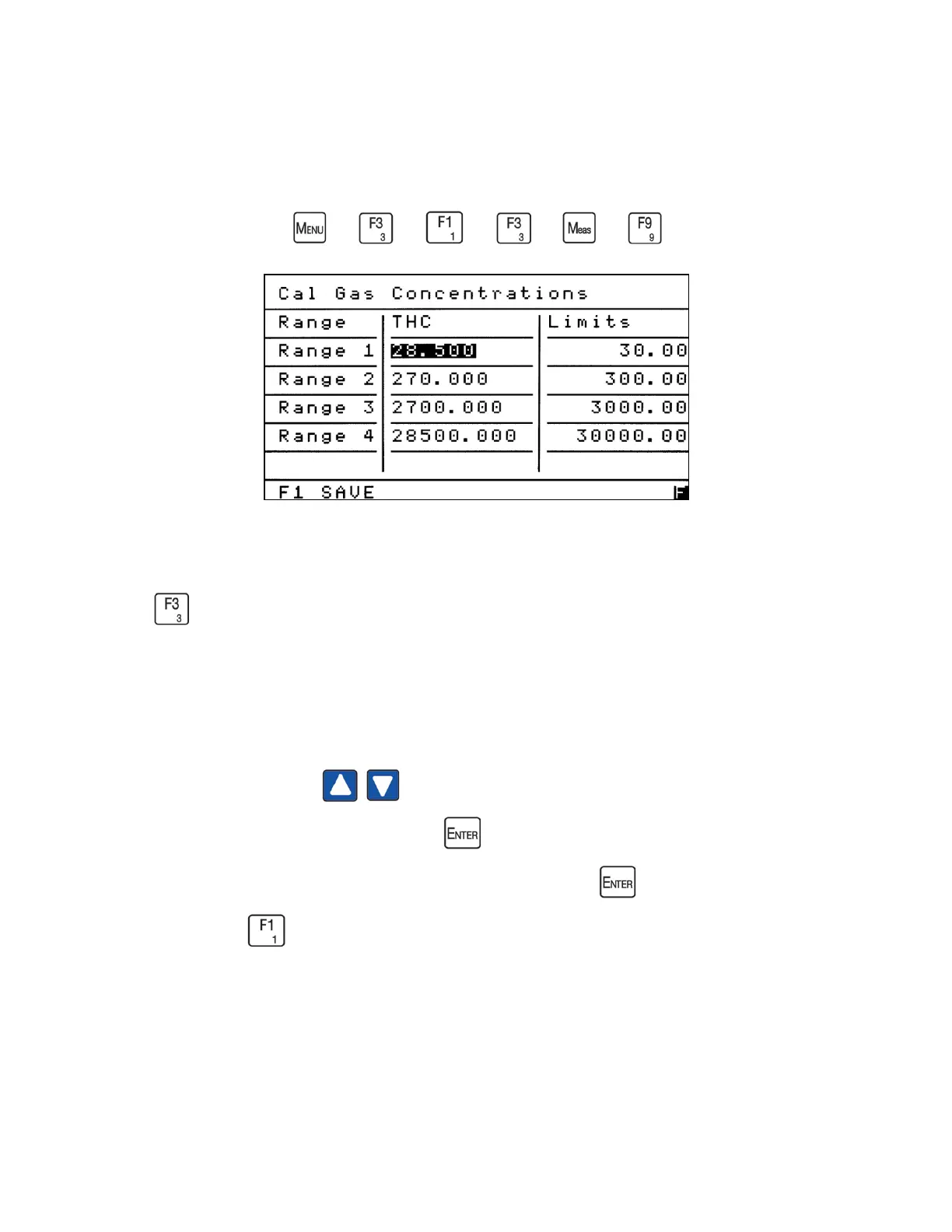 multiple ranges on one screen. To access the Cal Gas Concentrations screen (shown above)