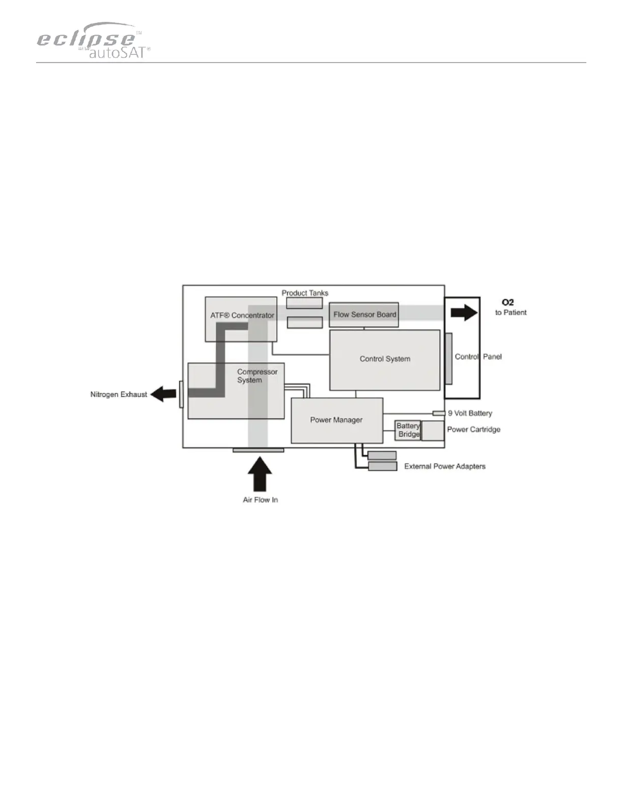 The Eclipse 5 uses a passive system to separate oxygen from air. Air flows into the Eclipse 5 where it is filtered and then