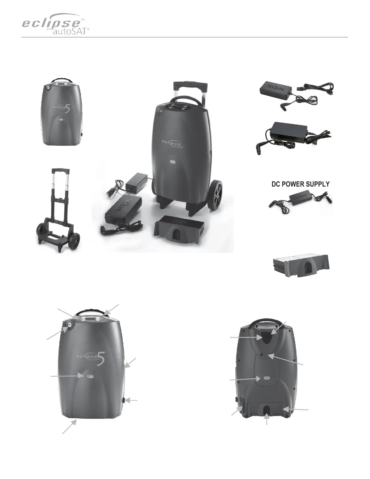 CAIRE Eclipse 5 with autoSAT - Eclipse 5 System Introduction; Front View Component Identification; Back View Component Identification