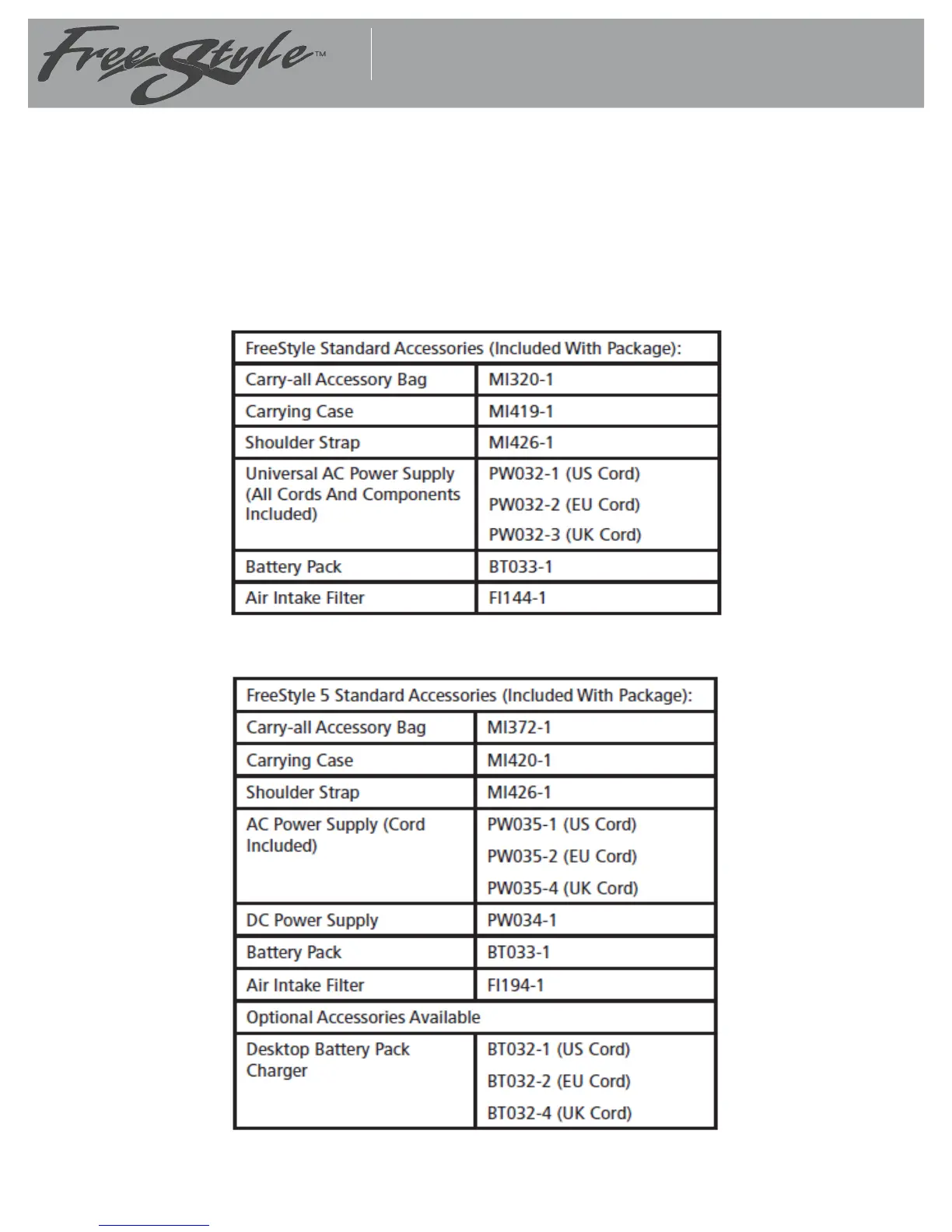 CAIRE FreeStyle - Accessories