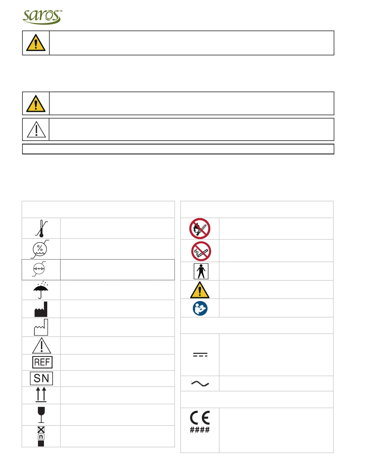 DEFINITION OF SYMBOLS PAGE / WARNING PAGE