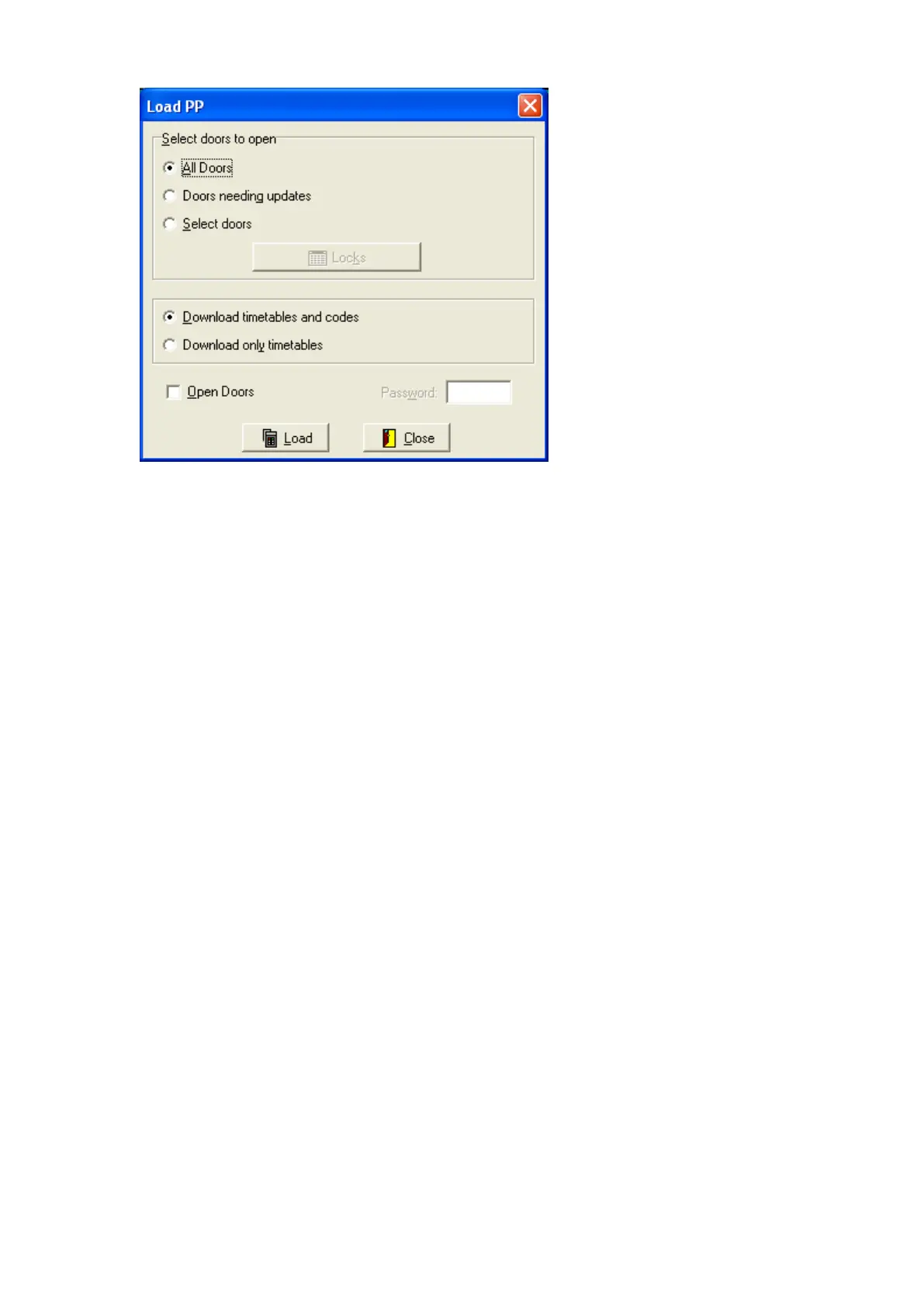 Then when the <LOAD> button is pressed the Locking plan will be loaded in the PP