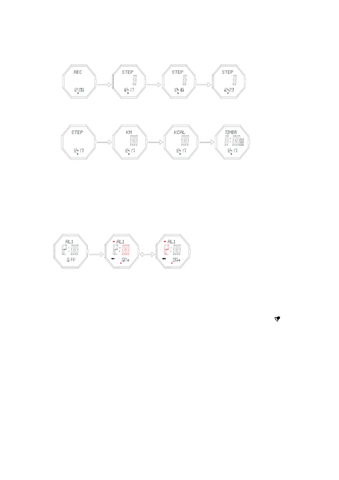➢ In alarm mode, press button D to shift among these items: AL1->AL2->Chime->AL1