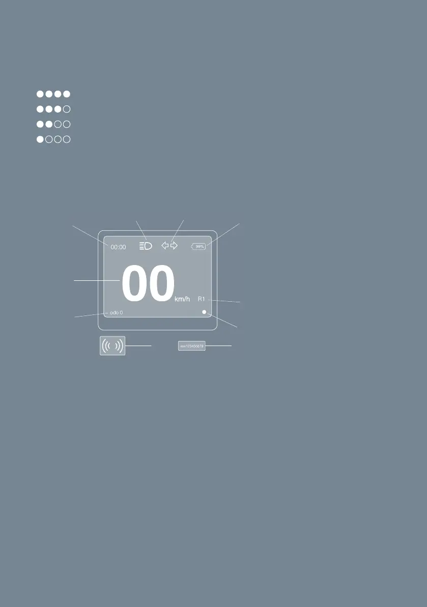 indicated by a white dot on the display, (J) in Fig. 9. The side-stand is located