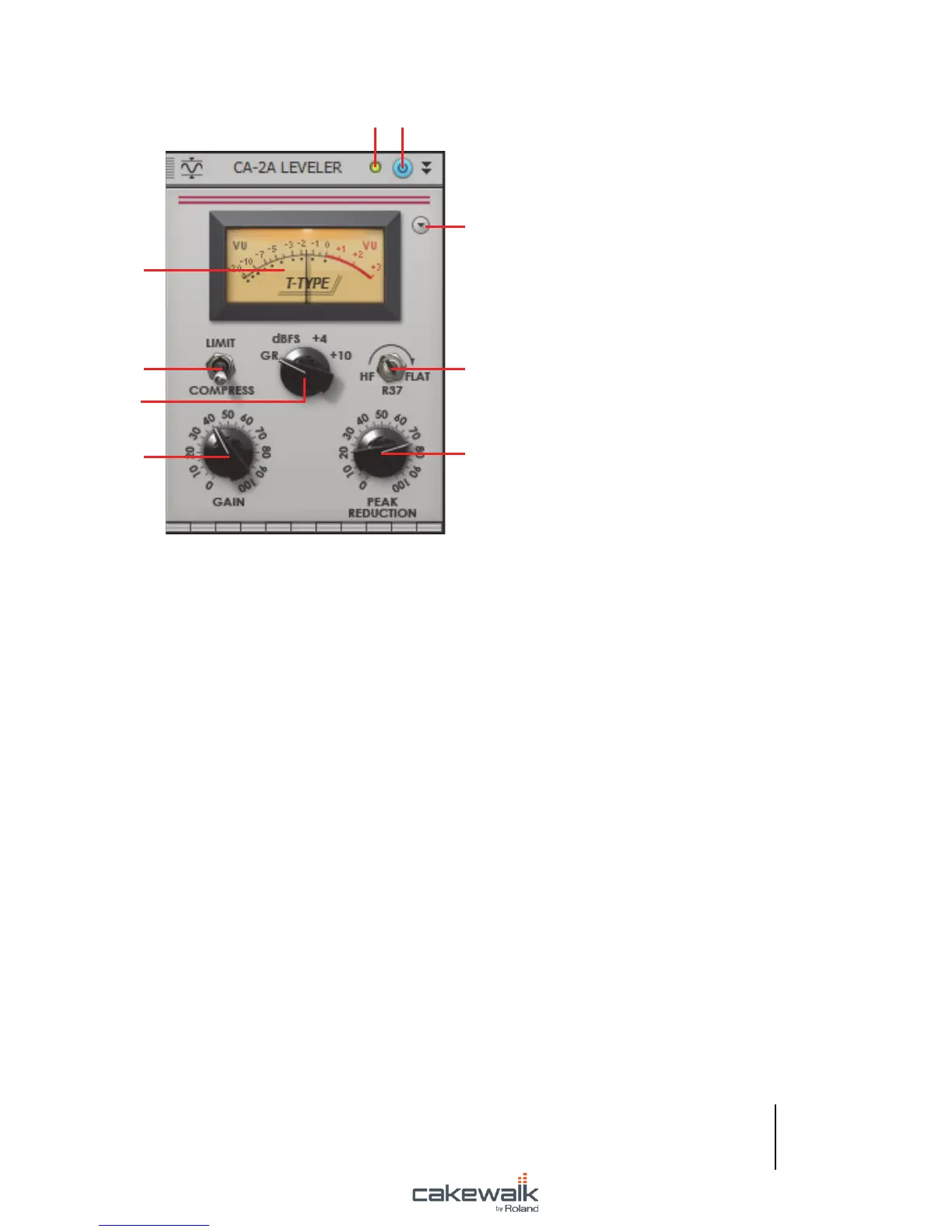 Der CA-2A T-Type Leveling Amplifier verfügt über die folgenden Bedienelemente: