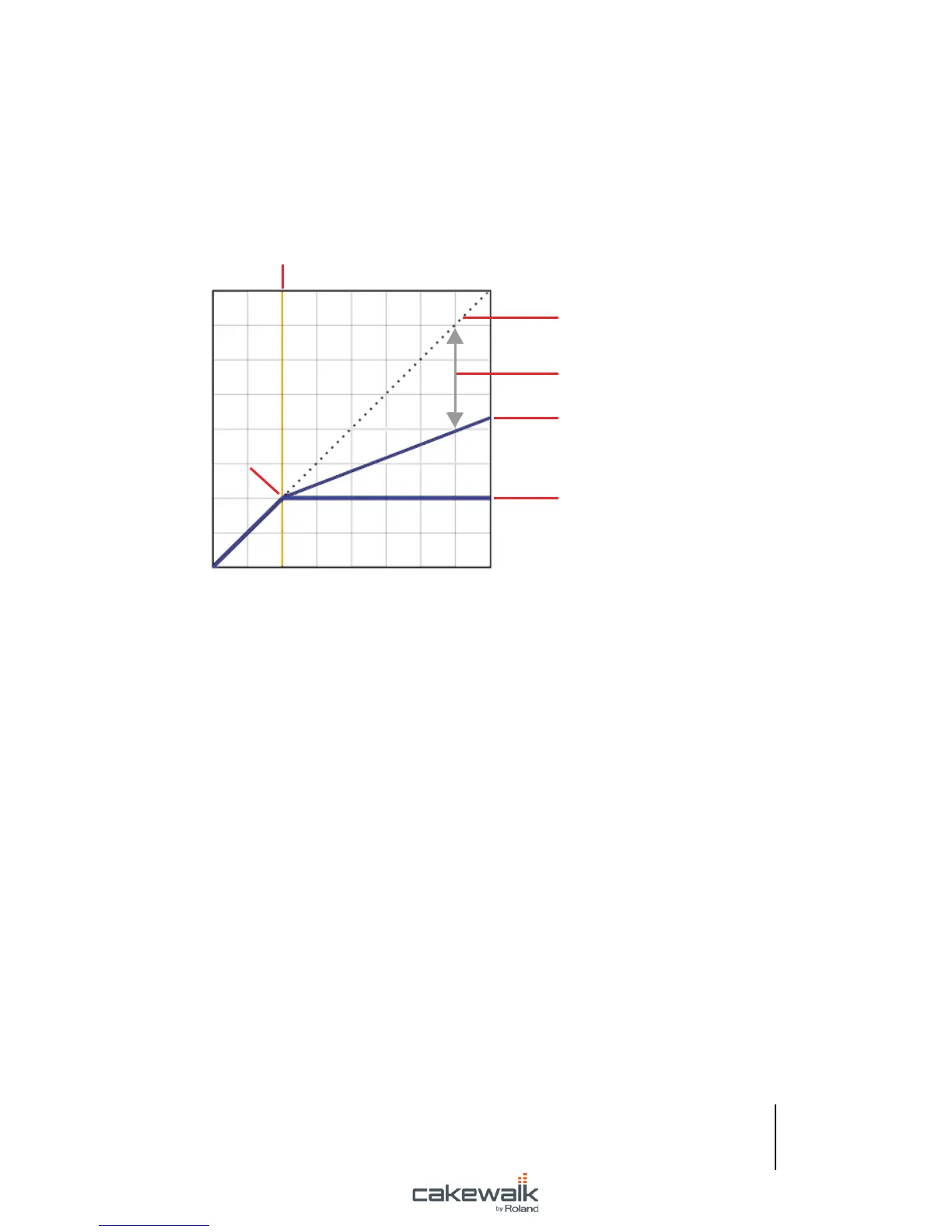 amplificateur et aucune réduction de gain n'est appliquée. Au-dessus du seuil, la pente devient