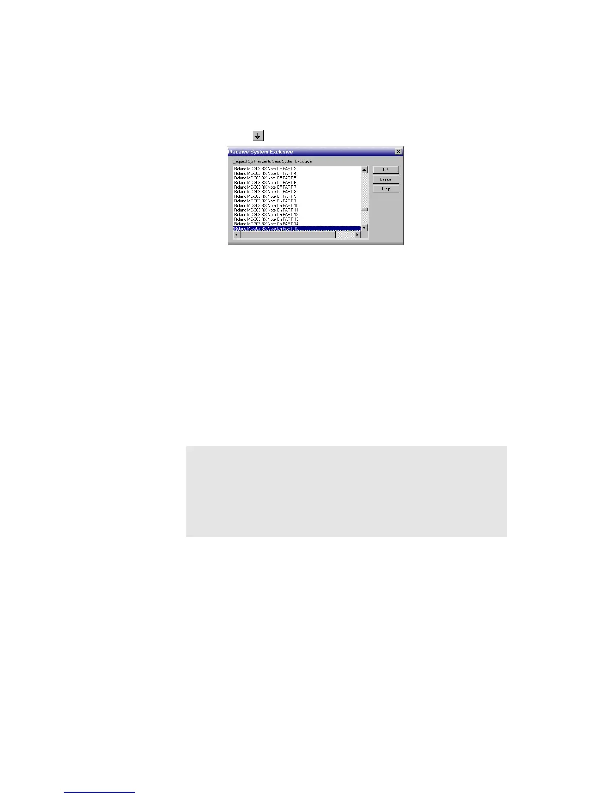 2. Click to open the Receive System Exclusive dialog box.