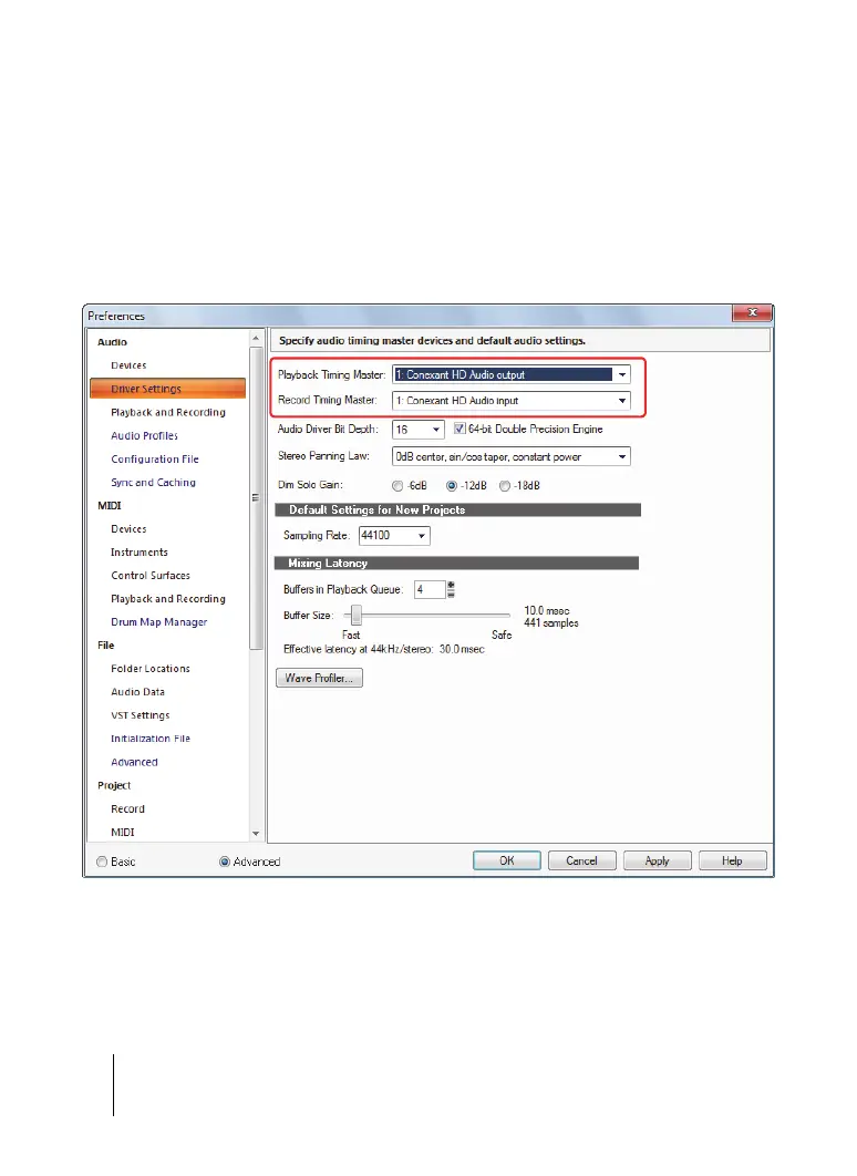 7. In the Playback Timing Master list, select the audio output device that you want SONAR