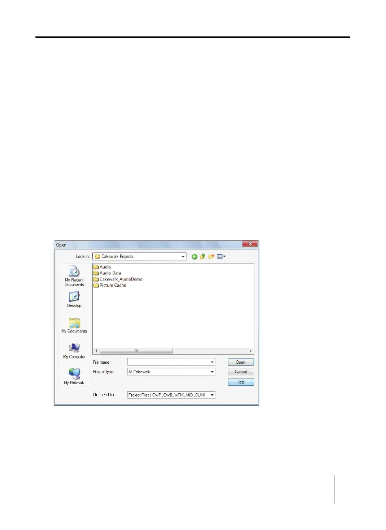open Cakewalk projects that are saved on your computer. The Open dialog box functions