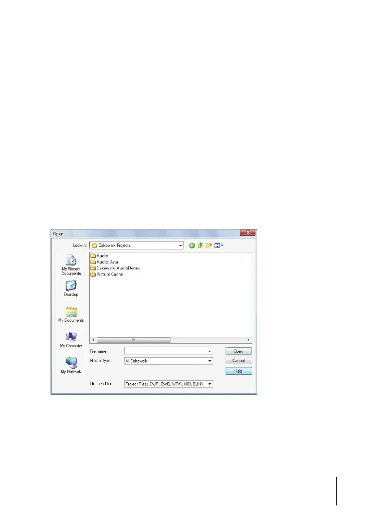 • Select File > Open from the menu bar across the top of SONAR’s screen.