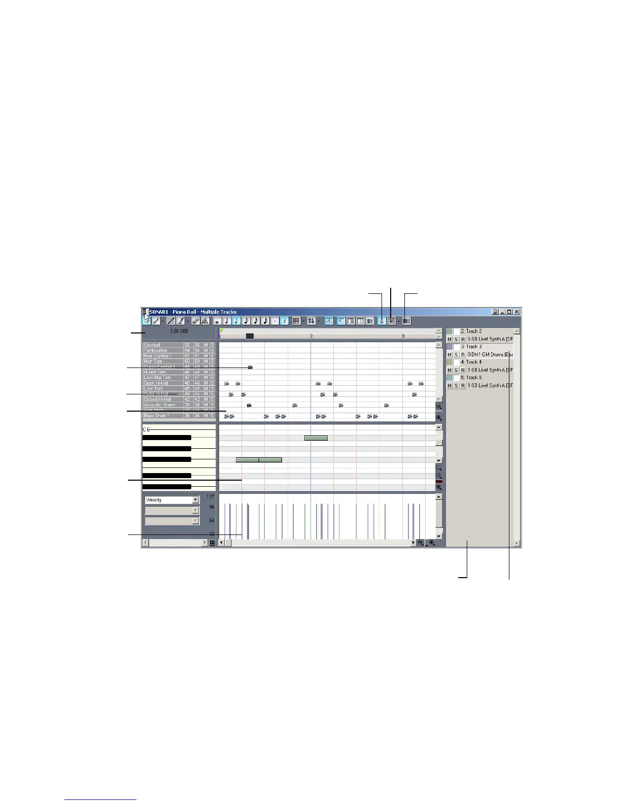 The Piano Roll view displays all notes and other events from one or more MIDI