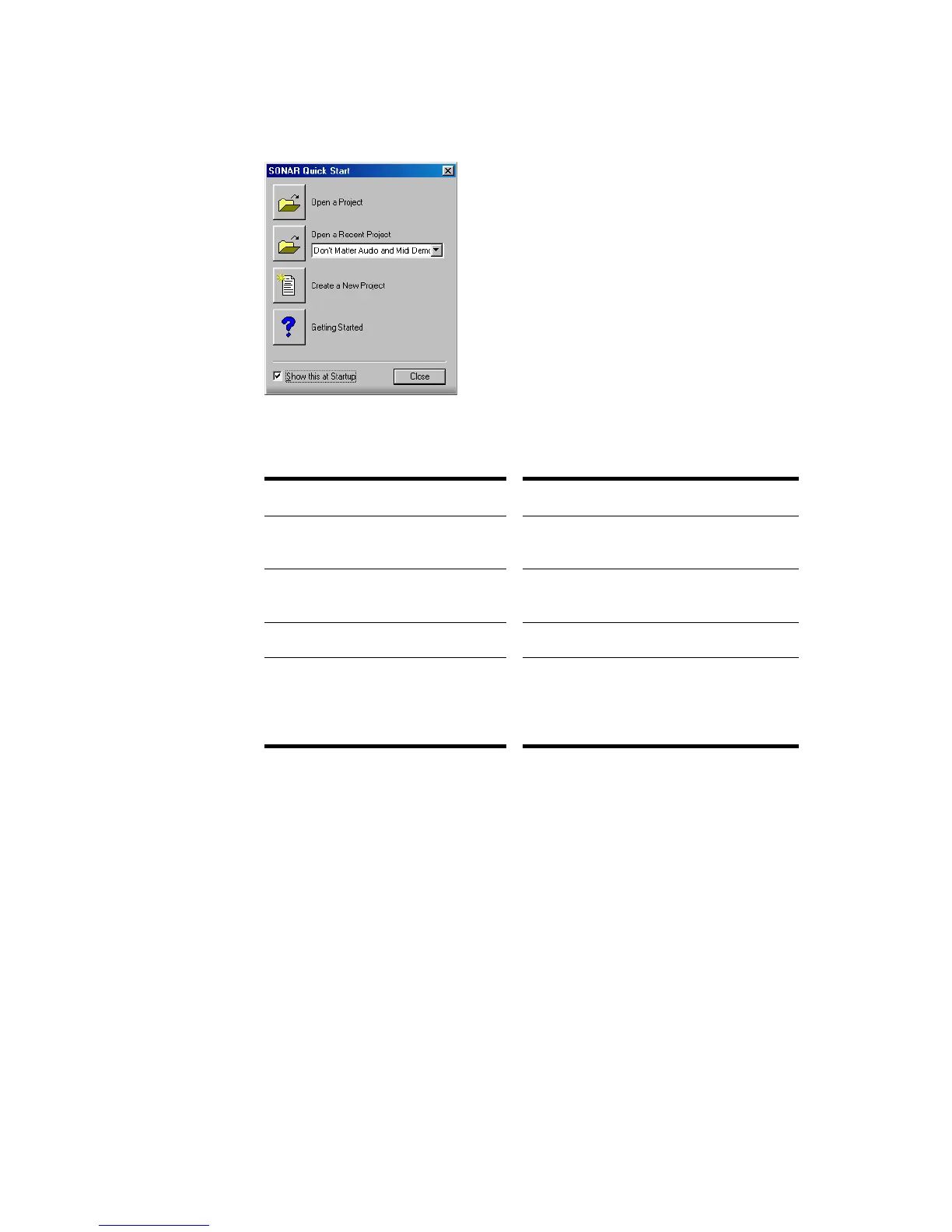 When you start SONAR, you see the Quick Start dialog box.