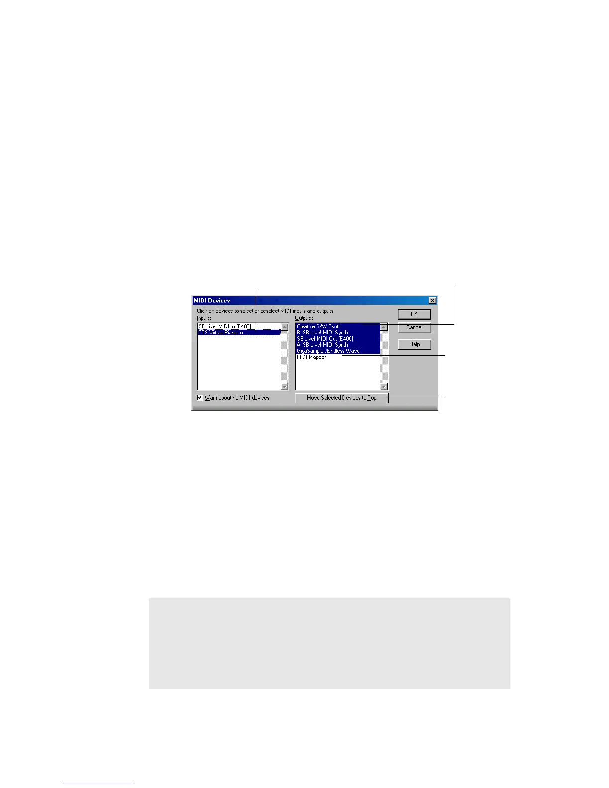 Choose Options-MIDI Devices to open a dialog box in which you select the MIDI