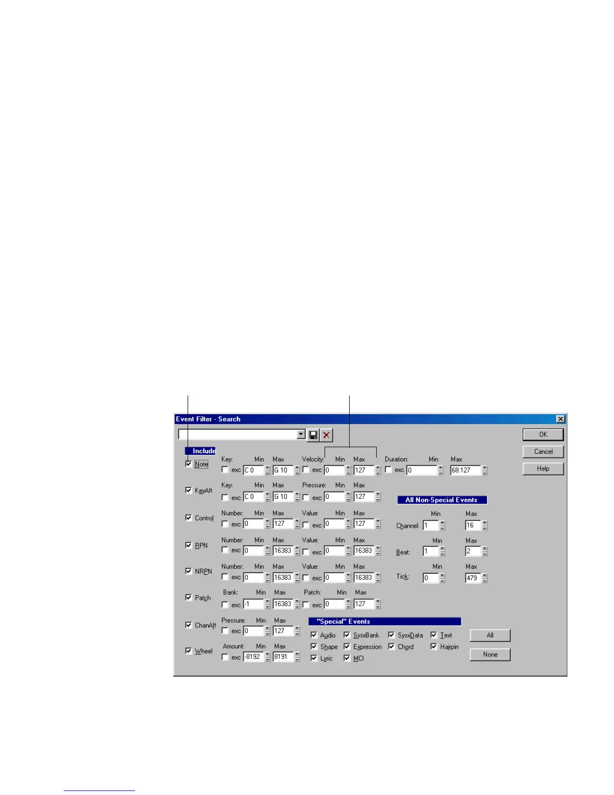 The Event Filter dialog box looks like this: