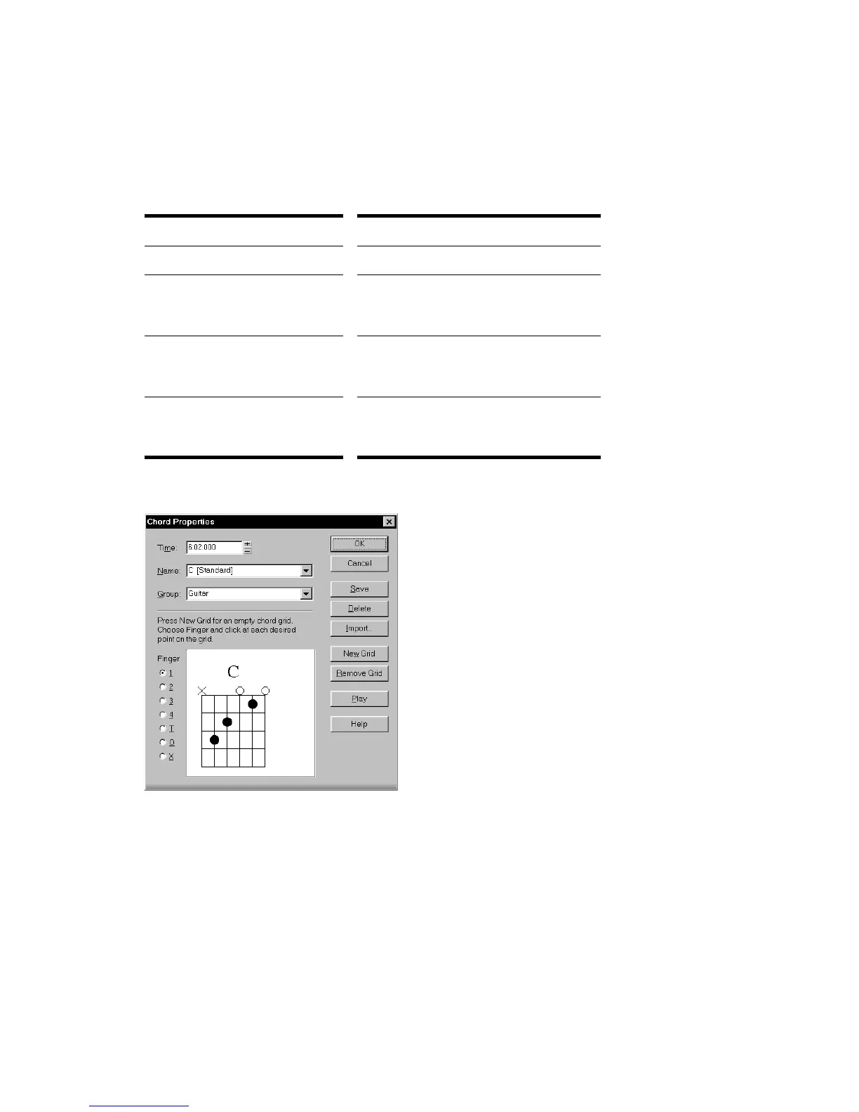 2. Edit information about the chord according to the table: