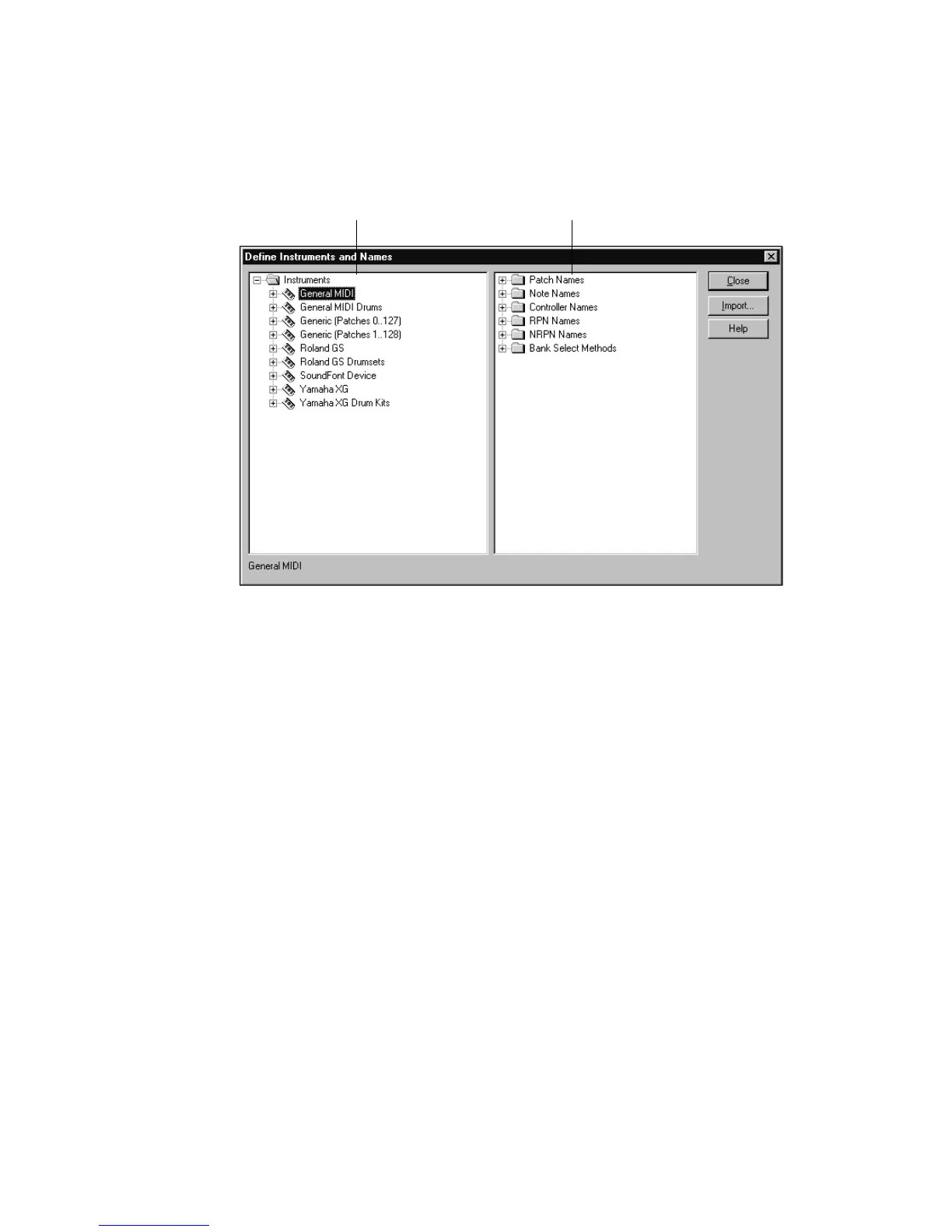 Names for Banks folder in the Instruments tree.