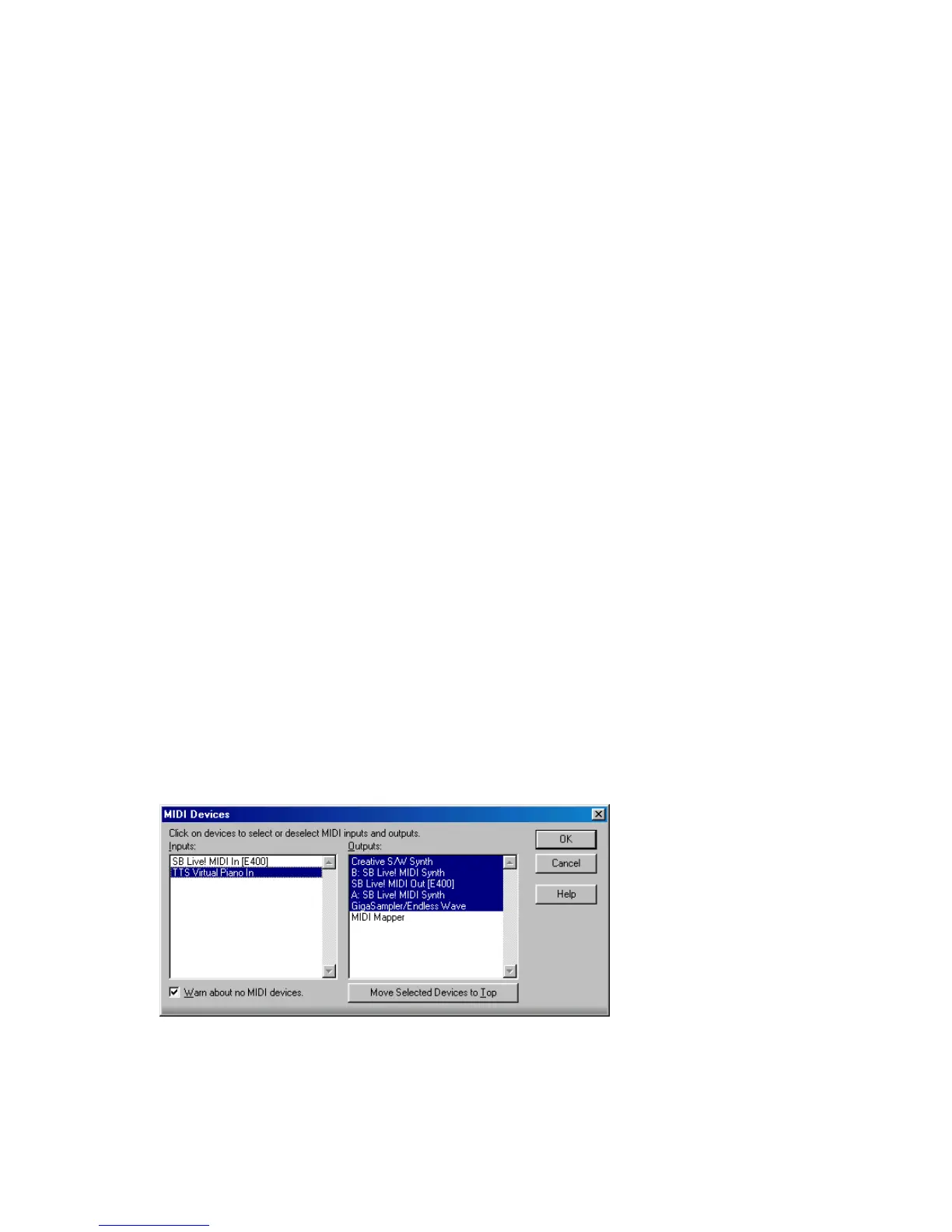 1. Choose Options-MIDI Devices to open the MIDI Devices dialog box.
