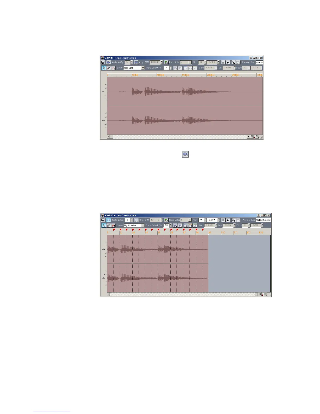 that SONAR has sliced this clip at eighth note intervals. This is a clip with a