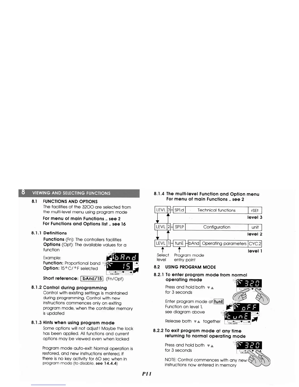 CAL Controls CAL 3200 - Viewing and Selecting Controller Functions; Function and Option Access; Program Mode Operation Tips; Navigating Program Mode