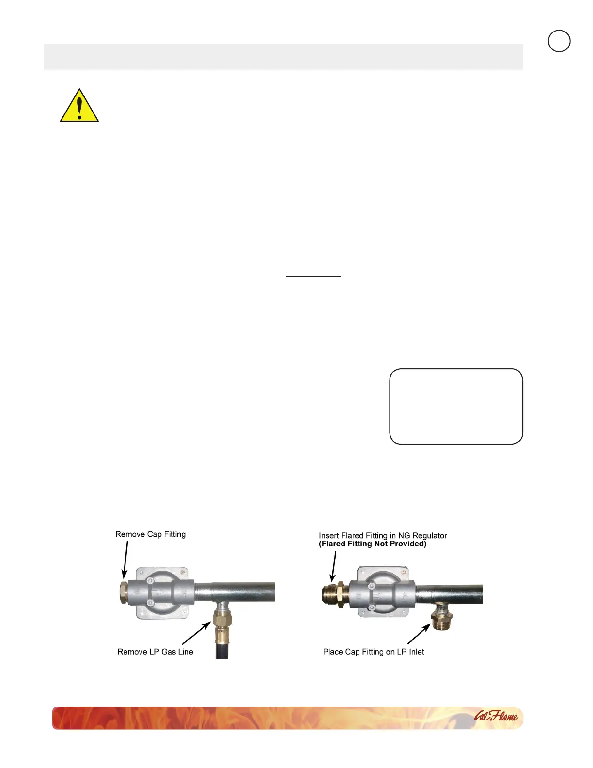 d. Insert a male ared tting (not provided) in the NG gas regulator.