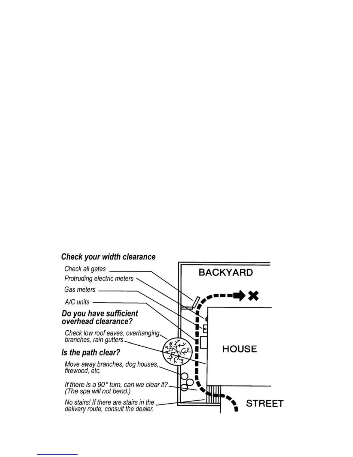 Check the width of gates, doors and sidewalks to make sure your spa •
