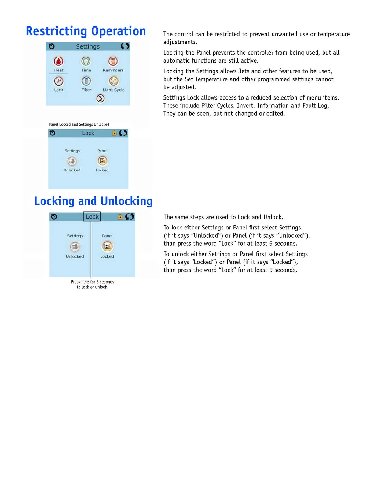 Cal Spas ESCAPE - Restricting Panel Operation