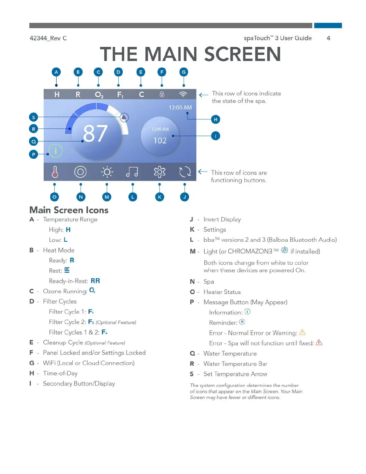 Cal Spas ESCAPE - Understanding the Main Screen