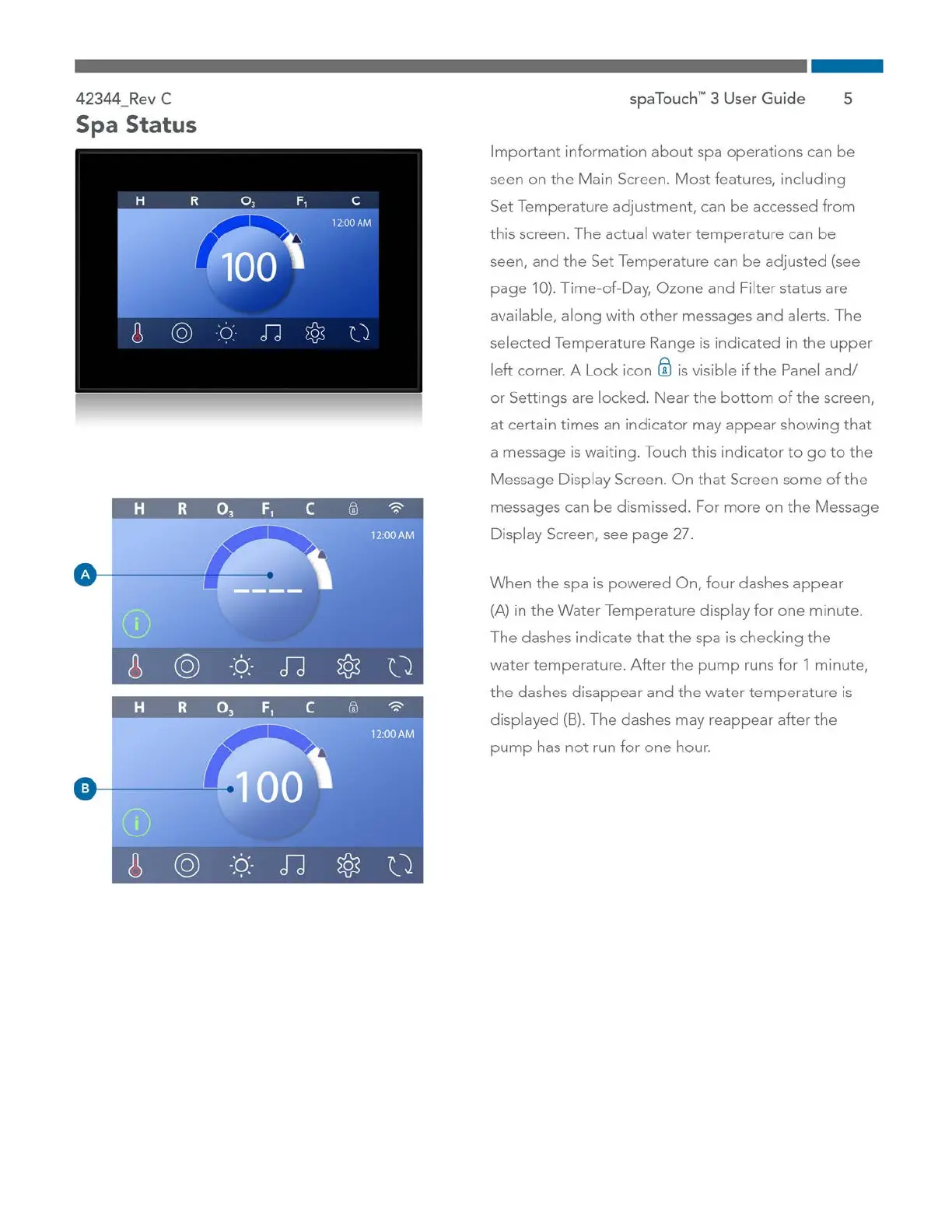 Cal Spas ESCAPE - Spa Status Display and Indicators