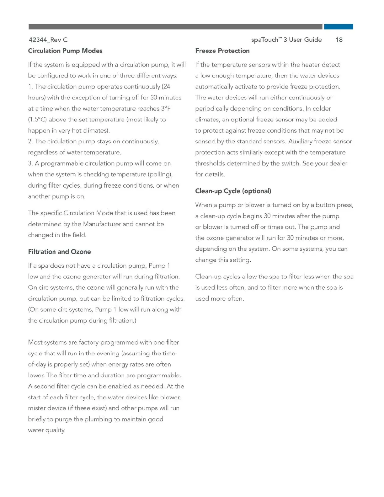 Cal Spas ESCAPE - Circulation Modes and Freeze Protection