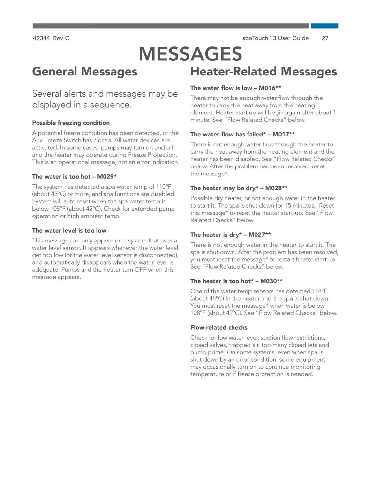 Cal Spas ESCAPE - General and Heater-Related Messages