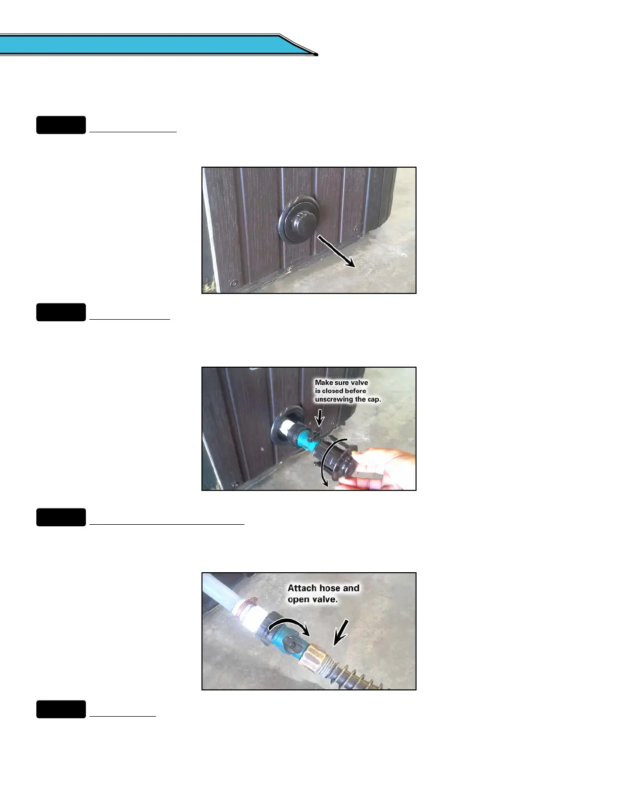 Turn the valve on the hose-bib fixture to open the drain. When the spa has drained completely, turn the valve on