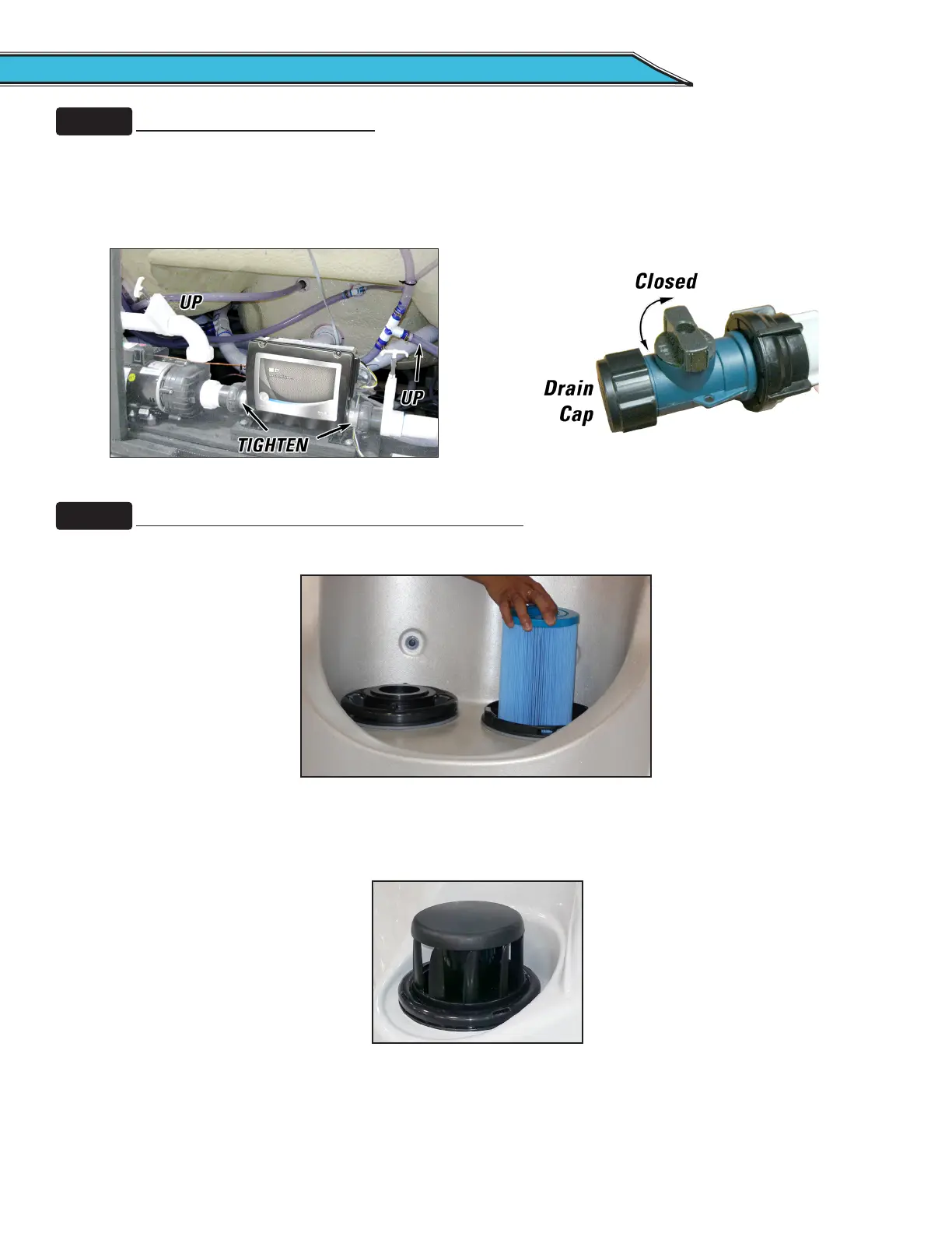 • If your spa has gate valves, make sure they are all in the UP or OPEN position.