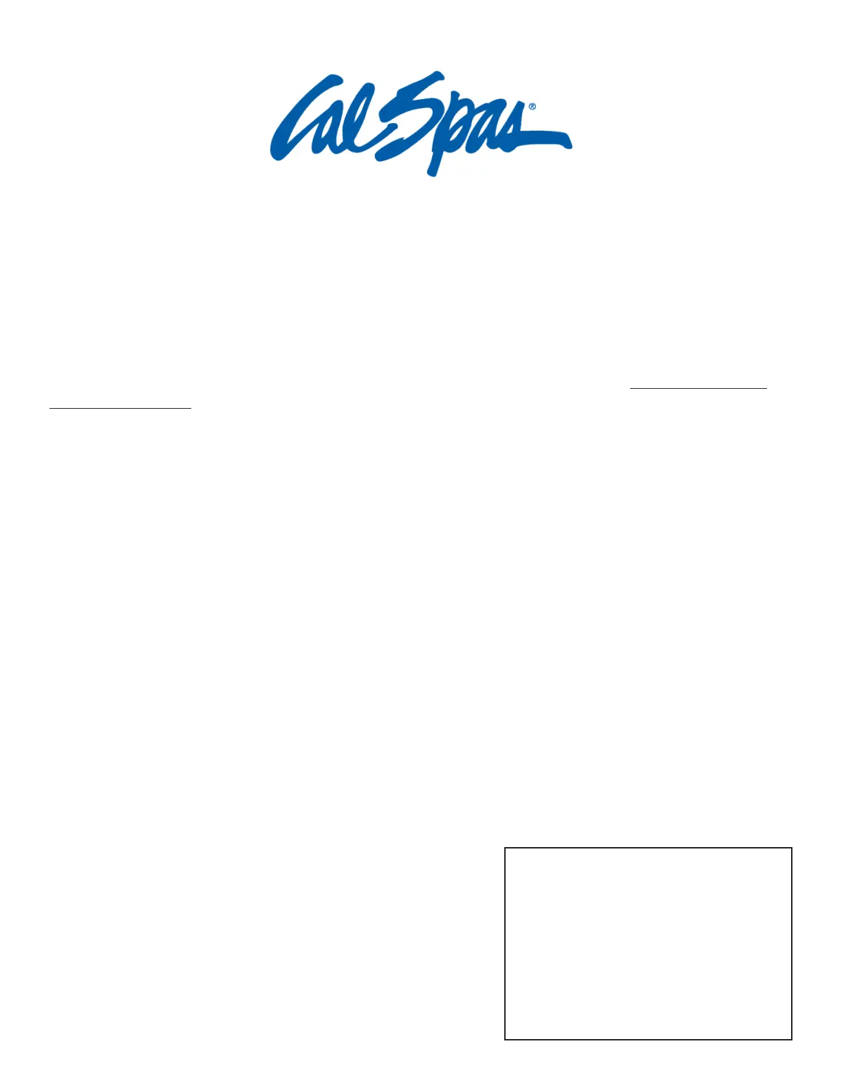 It is important that you register your Cal Spas product as soon as possible. By taking just a few quick minutes to