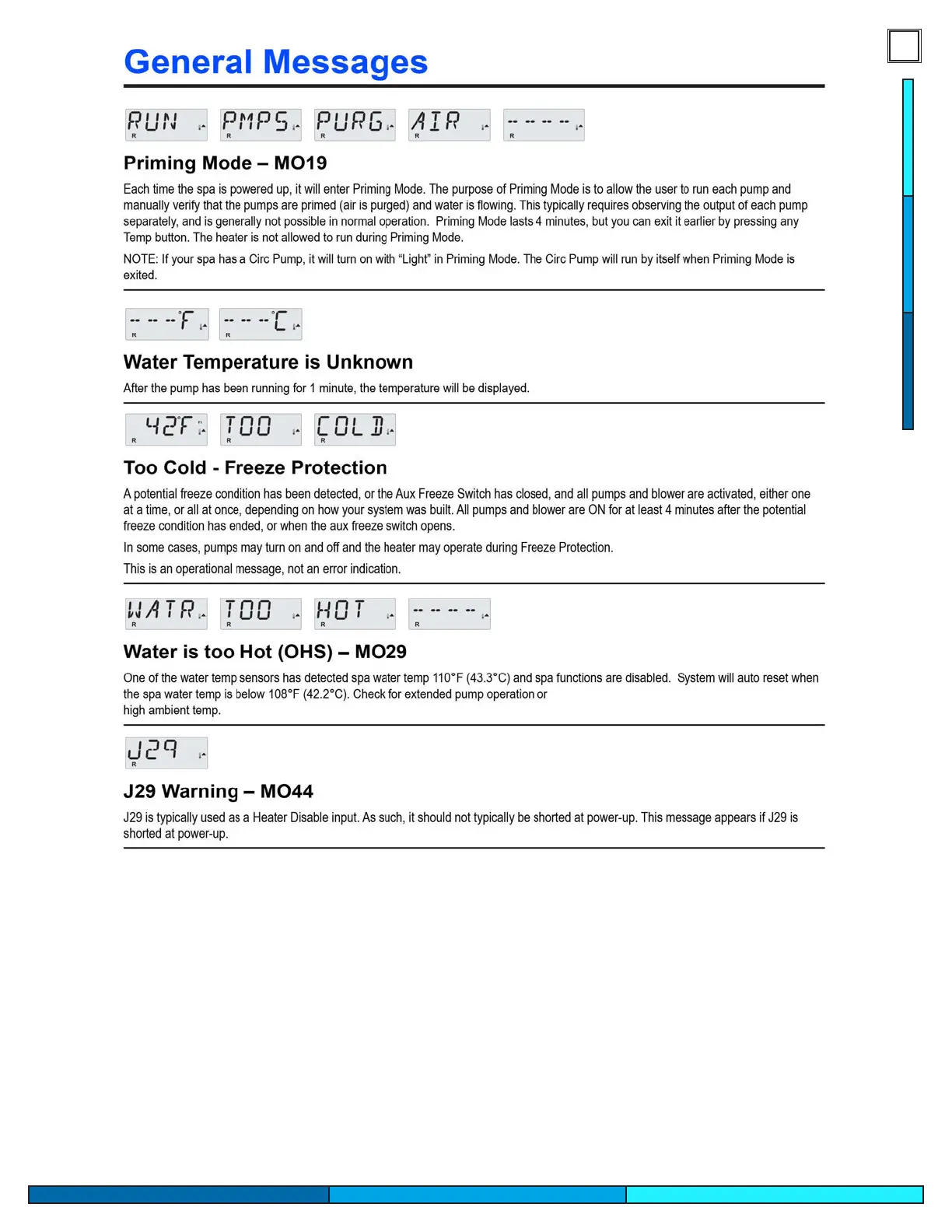 Cal Spas PATIO PLUS - General Messages