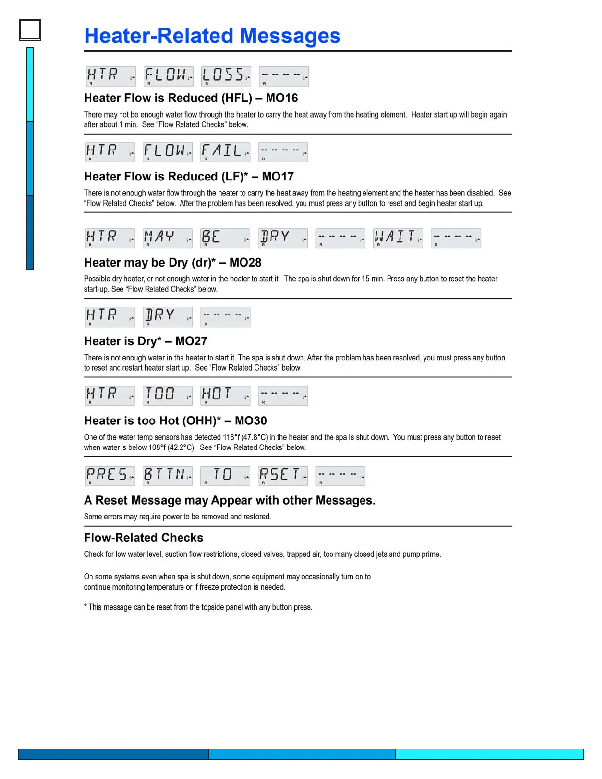 Cal Spas PATIO PLUS - Heater Related Messages
