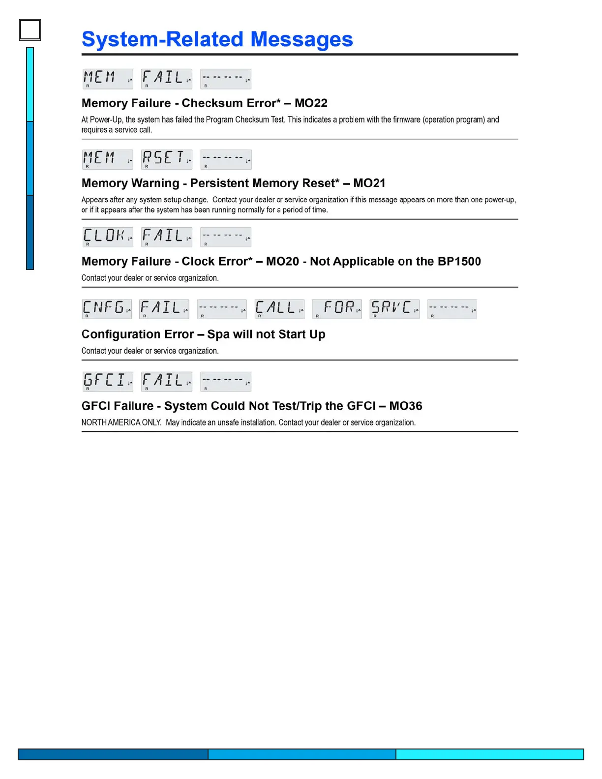 Cal Spas PATIO PLUS - System Related Messages