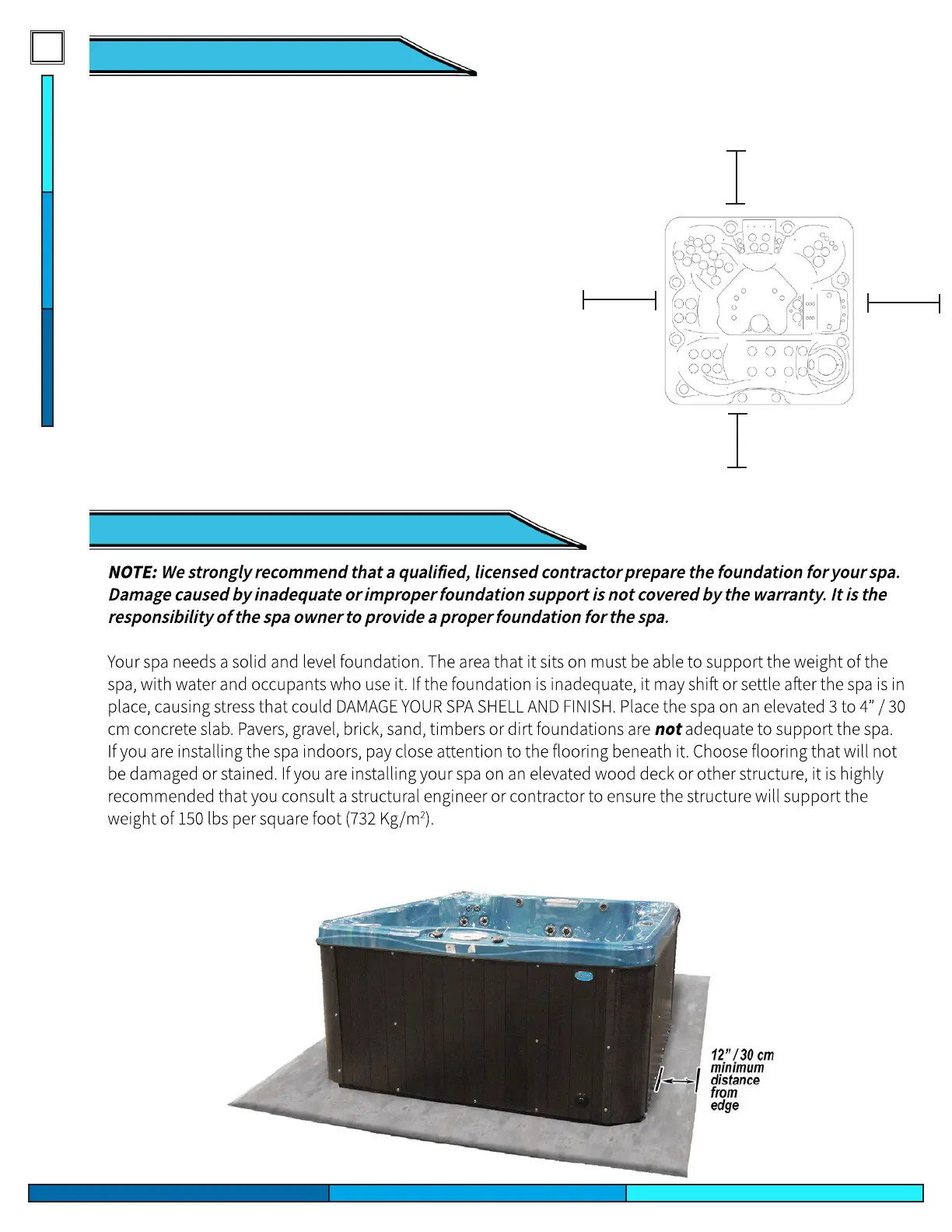 of access to all sides of the spa for potential service. For this