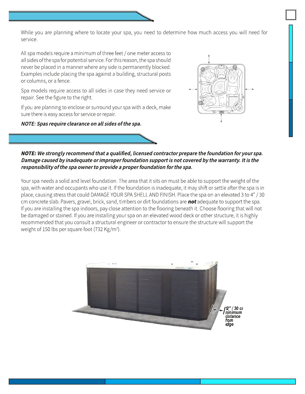 Cal Spas SWIM - Service Area Clearances; Foundation Requirements