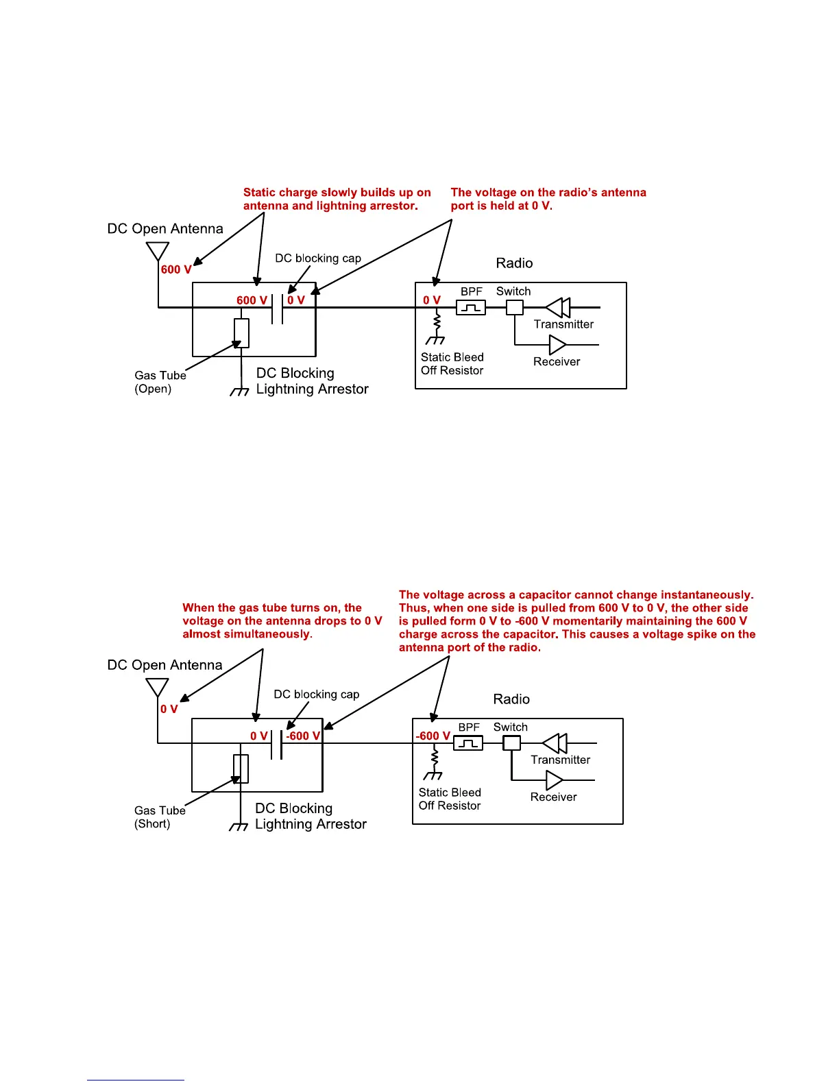 large negative transient is created on the antenna port of the radio. Positive transients can also be created if the static