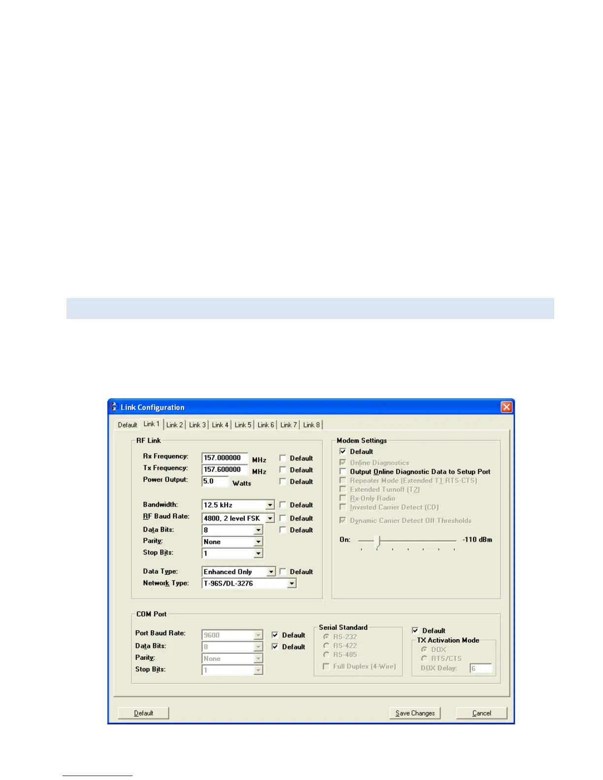 The Link Configuration window is accessed from the Link Configuration button in the User Configuration window. Link