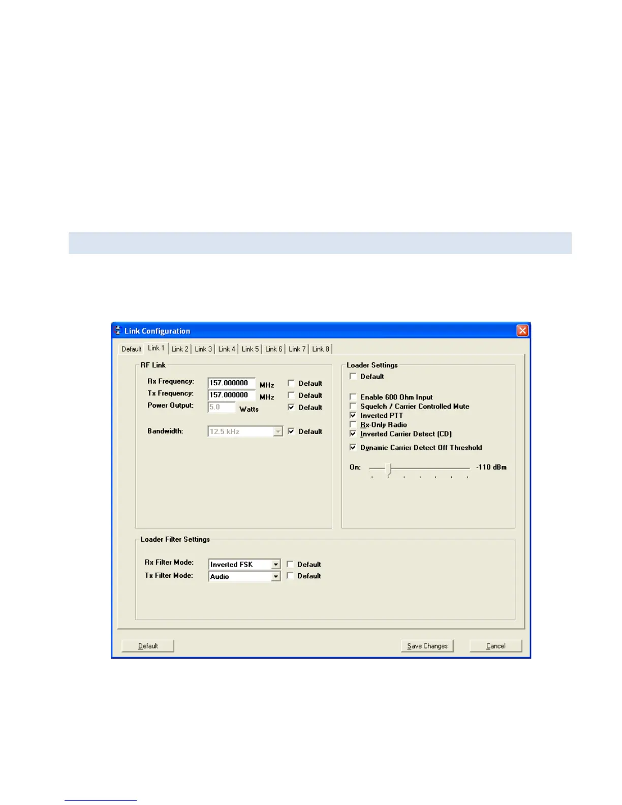 links. Each link is capable of using the settings from the Default tab by checking the Default check box, or of saving its