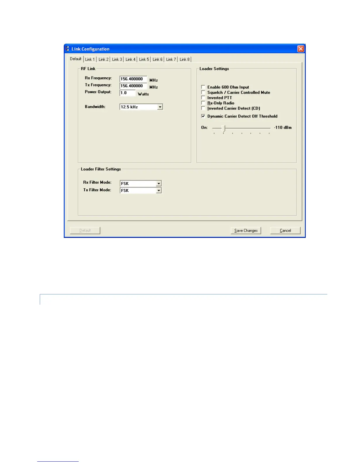 Figure 25 Link Configuration Window Default Tab – Loader Mode