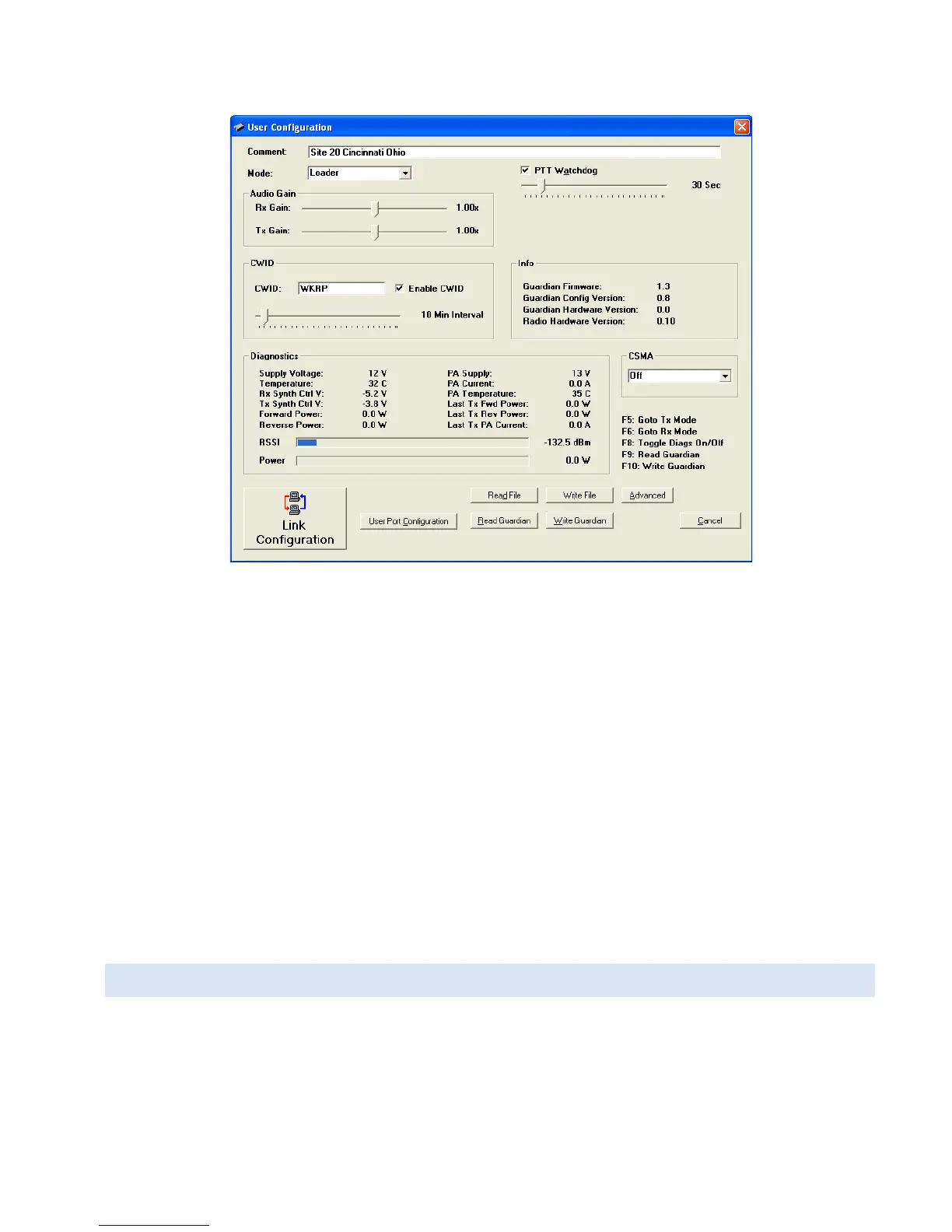 “Read Guardian” is automatically performed when the User Configuration window is opened with a Guardian Modem