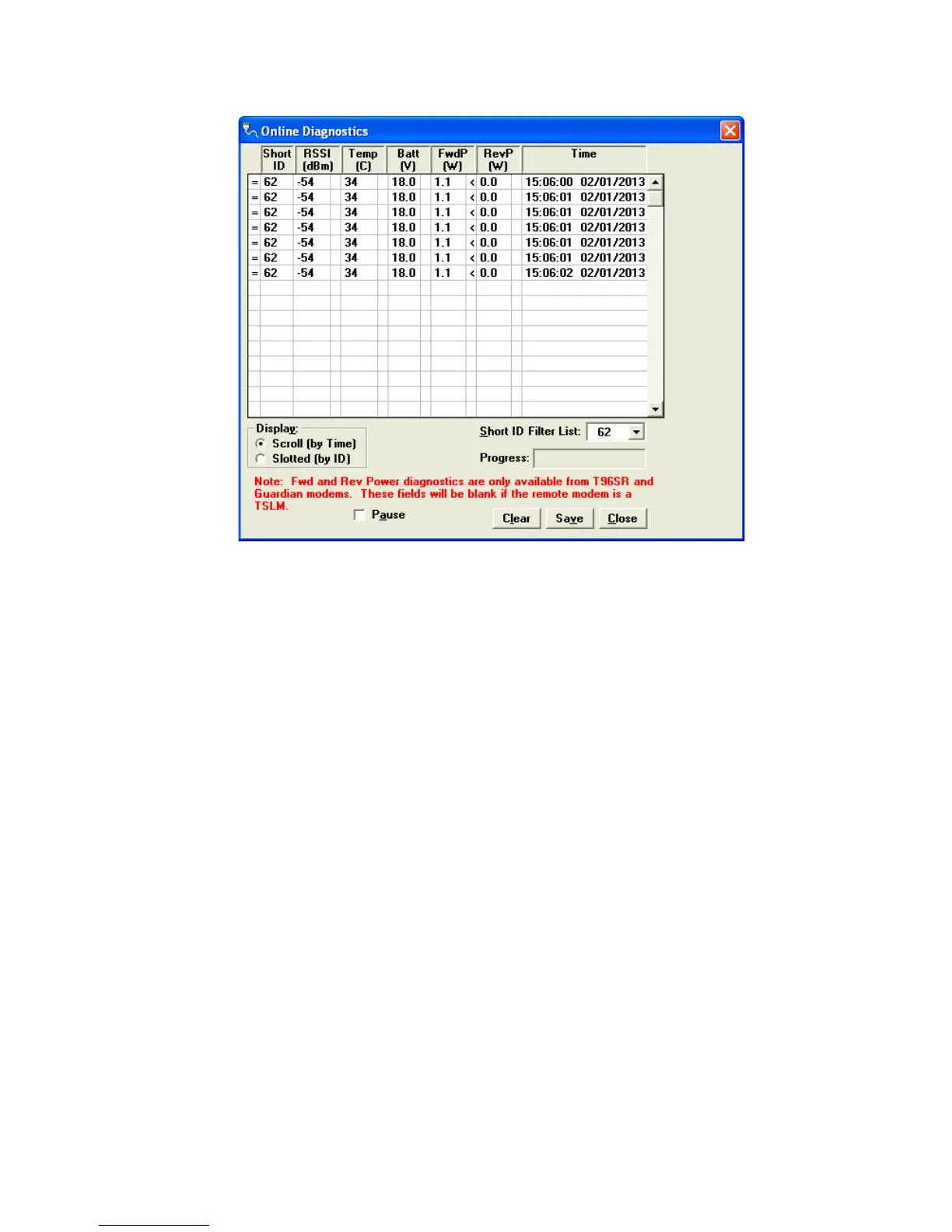 Displays the forward power (in watts) of the unit transmitting the diagnostics.