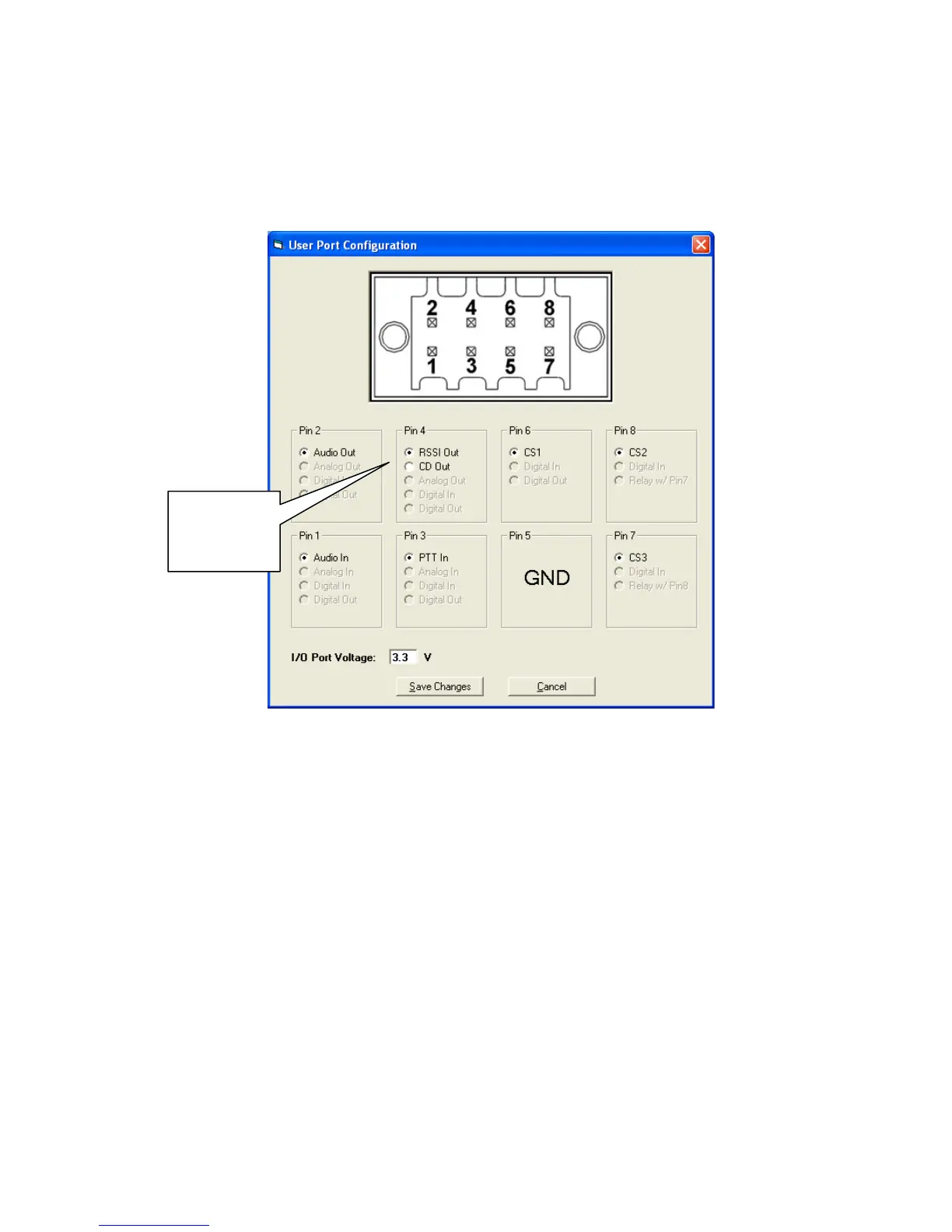 The User Port pin-out configuration can be displayed by clicking the User Port Configuration in the User Configuration